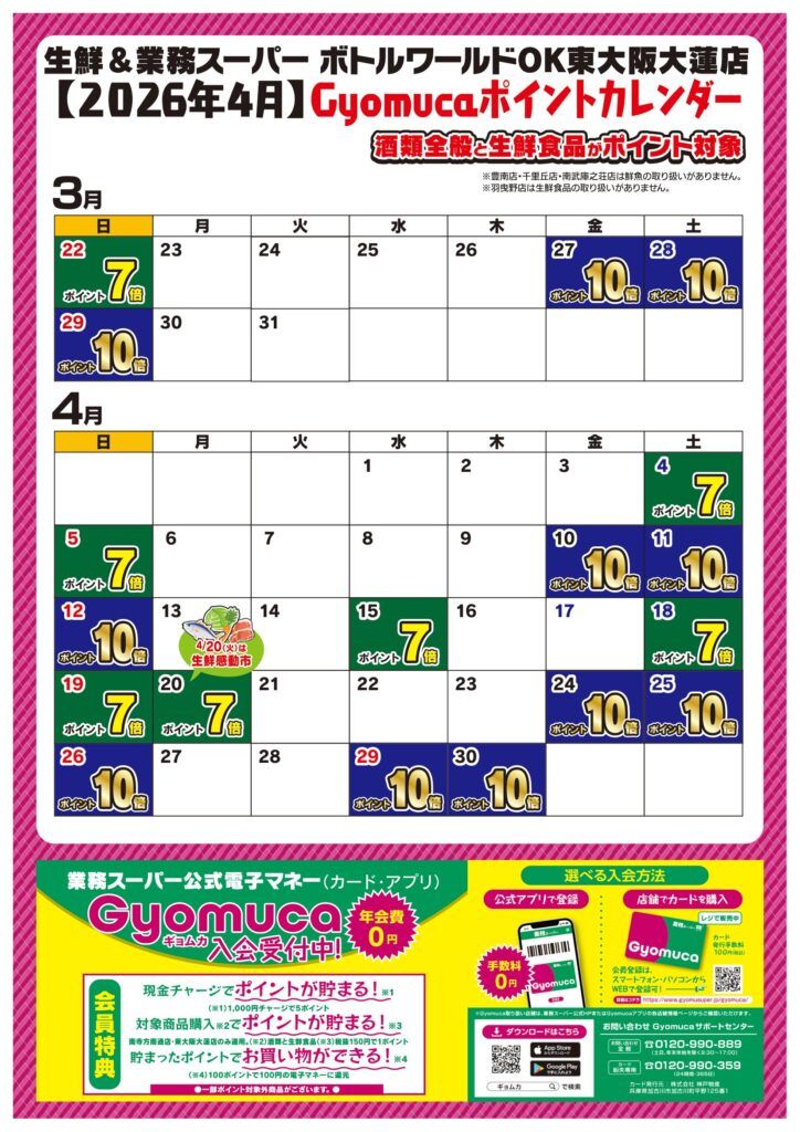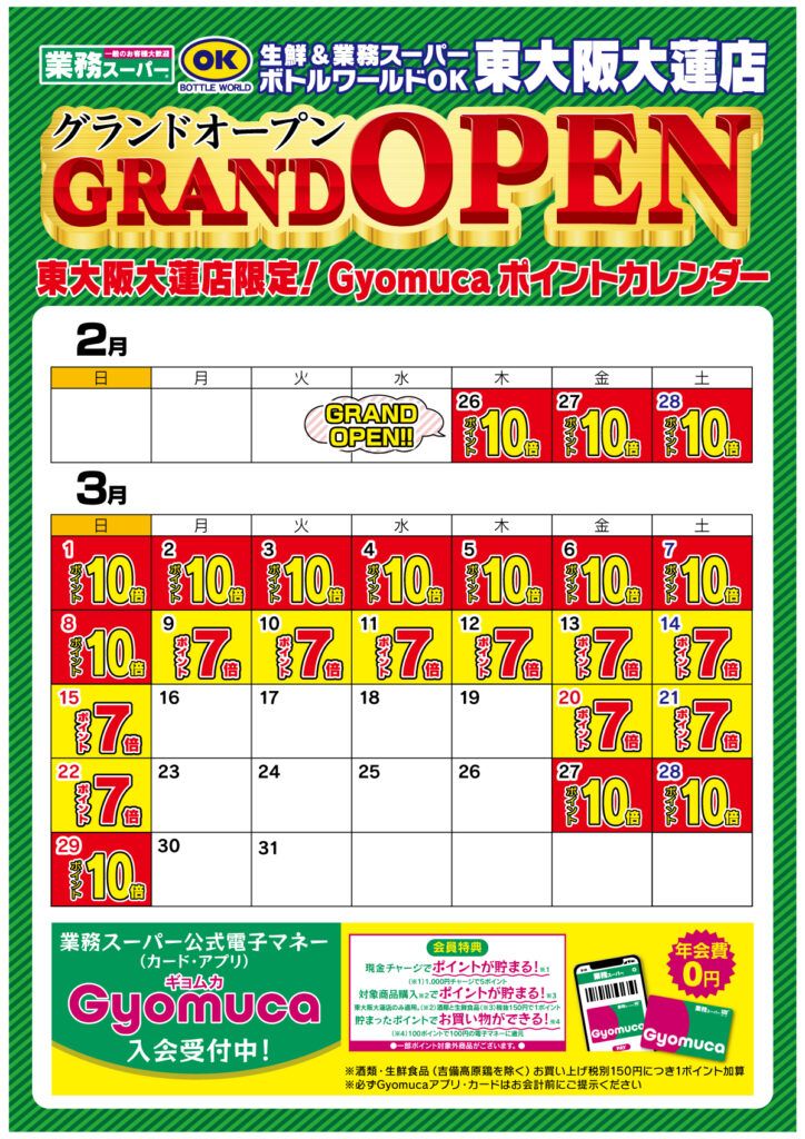 【東大阪大蓮店】ポイントカレンダー