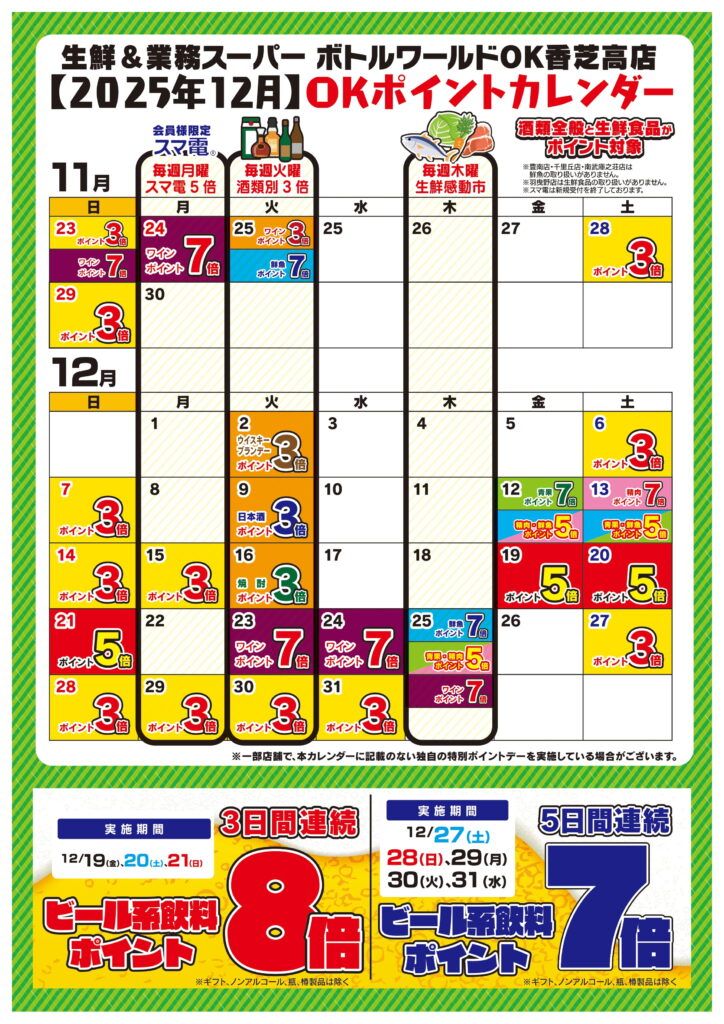 【香芝高店限定】ポイントカレンダー