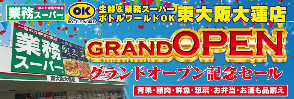 生鮮&業務スーパーボトルワールドOK 東大阪大蓮店が堂々のGRAND OPEN!