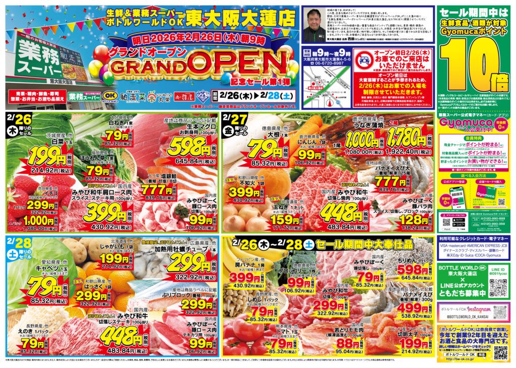 生鮮&業務スーパーボトルワールドOK 東大阪大蓮店が堂々のGRAND OPEN!