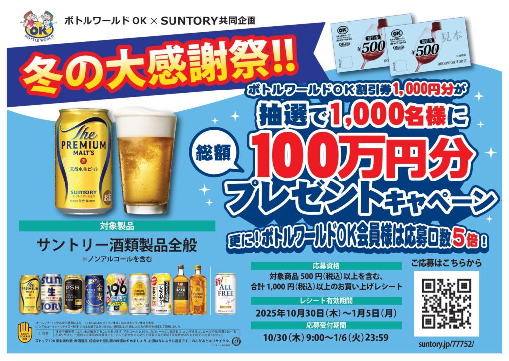 さぁ~、サントリーの商品を買って 下記QRコードより ご応募ください